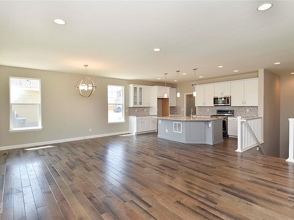 This home features an open floor plan with 9' ceilings, a fireplace with a spacious great room adjacent to the fabulous kitchen, with large island and walk-in pantry. Upgraded hardwood floors, 42" maple cabinets, granite, tile, and stainless steel appliances. Master bedroom suite includes a 5 piece super master bath and extra large walk-in closet. All bathrooms have upgrade tile. The home also features a basement with rough-in plumbing and a 2 car garage with 8' door. Home backs to greenbelt. All front/side yards are maintained by HOA. The homes also includes fencing, large deck, and snow removal.