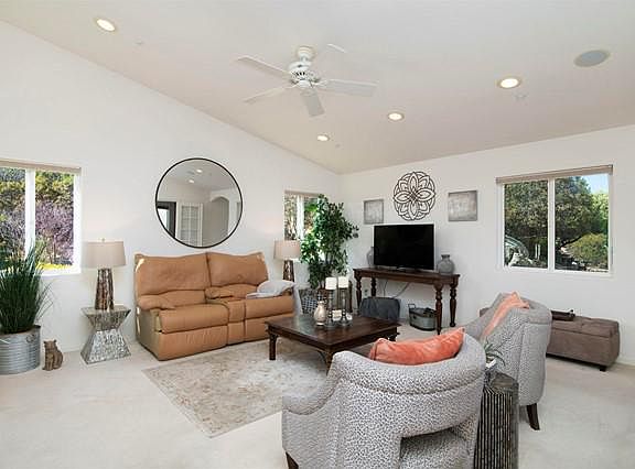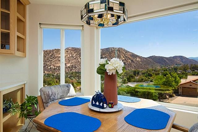 Spacious, countryclub living and stunning views in this impressive home in San Diego Country Estates. 3 bedrooms plus an office. Vaulted ceilings make this home light and bright. Luxurious master suite with 2 walk in closets. Master bath features a soaking tub and separate shower. 2 bedrooms share a Jack and Jill bath. Back yard backs to open space and has orange, tangelo and apples trees. Oversized 2 car garage. On well water and leased solar for utility savings.