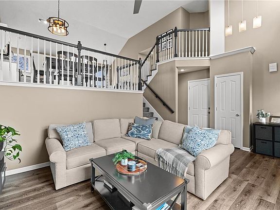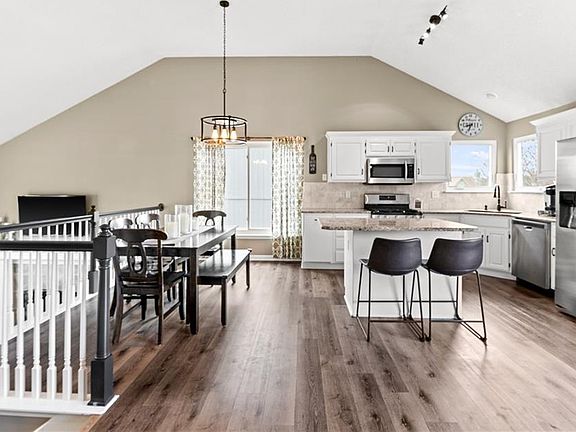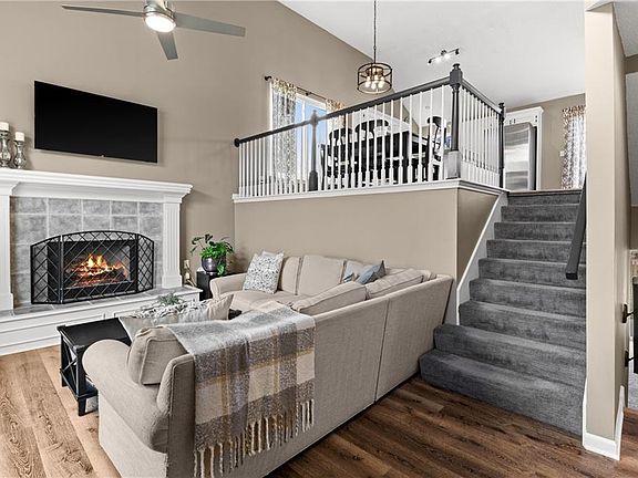 Beautiful updates throughout this open floor plan with soaring ceilings! Living room, kitchen, breakfast nook and dining room feature luxury vinyl plank flooring. You'll love the spacious kitchen with island, granite counters, SS appliances, gas stove and abundant cabinets plus counter work space. Living room featuring fireplace. Designer carpet on stairs plus neutral paint colors, ready for you to move right in. Private primary suite on it's own level with his/hers closets and bath with double vanities! Laundry conveniently located on bedroom level. Finished walkout basement with beverage refrigerator, family room, full bath & office/workout or non conforming 4th bedroom! Deck and patio ready for relaxing or spring entertaining. Fenced level yard. Great location with school and subdivision pool just walking distance from home! Newer Hot Water Heater!