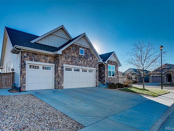 Immaculate urban farmhouse ranch style home with amazing outdoor features and corner lot. Inviting entry leads you into this open floor-plan with 10' ceilings. Huge gourmet kitchen for entertaining guests featuring a 6 burner gas cooktop, Corian countertops, luxury laminate hardwood flooring, SS appliances, double ovens, microwave, and a very large kitchen island and pantry. Enjoy the luxurious primary suite that has room for a sitting area, 5-piece primary bath and an extra-large walk-in closet. The finished basement has 9' ceilings, 1 Bedroom, 1 Full Bathroom, oversized recreation room, New carpet, New luxury laminate flooring and gaming area. There are 2 additional non-finished storage areas. Spacious laundry/mud room off the 3-car garage! Truly enjoy those Colorado days and evening on the covered back patio. Such a great entertaining space. For those green thumbs there are several raised planter boxes! Wonderful location close to Larkridge Shopping Center, Starbucks, Costco, Restaurants, Home Depot, and easy access to I25 and E-470. Low HOA fee. Energy star certified home. Fun 5-acre park 1 block away! Hurry on this gem!