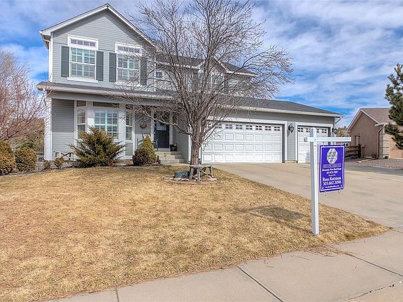 Beautiful two story home with custom finishes. Five bedrooms - perfect for a big family. Includes a large master bedroom with an updated bathroom and walk-in closet. You'll enjoy the gorgeous kitchen with island. Open living room and dining area with wonderful natural lighting. The kids have the choice of playing in the family room or going downstairs to the finished basement. The basement includes a bed for guests and a wet bar. Perfect situation for a teenager or visiting family member to feel at home. Fenced in backyard is private with great views of the mountains. The roomy three car garage can handle all of your automotive needs. Recent appliances. Close to I-25, Air Force Academy and Fox Run Regional Park. It won't last long!