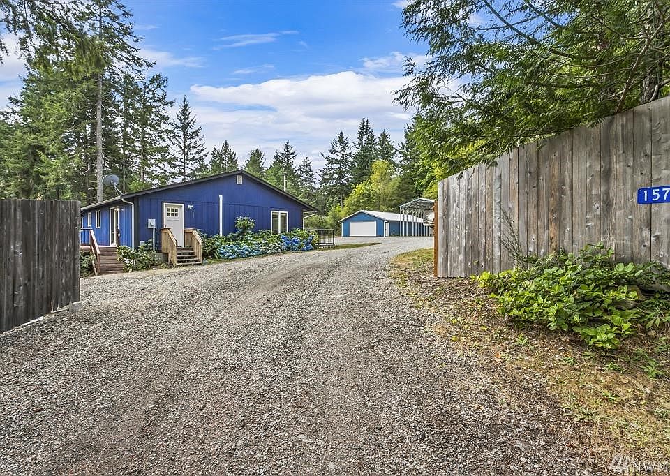 It's a great open feel the minute to drive through the gate on this 4.5 acre property. Open concept floor plan in the 3 bedroom, 2 bath home. Vaulted ceilings in the large living room. Three split AC units keep it cool all summer, wood stove keeps it cozy. Open kitchen with large breakfast bar. Dining room opens to the oversized back deck overlooking the property. The huge detached garage/shop is a dream come true for many! Oversized, covered RV parking with power adds lot of options.