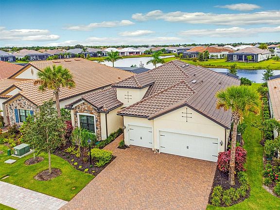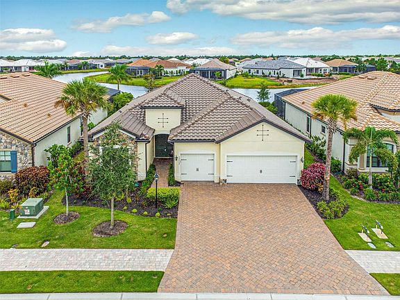 MULTIPLE OFFERS RECEIVED, HIGHEST AND BEST BY 5PM, SATURDAY, NOVEMBER 20TH! Your dream home awaits! Enjoy the best of Florida living in the exclusive gated village of Country Club East at Lakewood Ranch. This 2 year-new home is perfectly positioned on a beautiful waterfront homesite to capture stunning nightly Florida sunsets. Wih its well thought-out floor plan, the Summerville appeals to people at all phases of life. The centerpiece is a large open kitchen and great room featuring a massive island, 5 burner gas cooktop, quartz countertops, a large walk-in pantry and classic stainless appliances. The generous great room flows seemlessly to the covered lanai, outdoor kitchen, pool and spa perfect for carefree entertaining . The large primary en-suite features trey ceilings, walk in shower, soaking tub and large walk in closets. Other features not to be missed include: guest bedroom 1 featuring a private en-suite bathroom with walk-in shower, guest bedroom 2 has a full bath right outside its doorway, a large den/office, high ceilings, tray ceilings, 3 car garage with ample storage areas, tankless water heater, hurricane windows, extensive landscaping on all sides and much more. Enjoy the resort lifestyle in Country Club East with three community pools and the resident only amenity center, The Retreat, featuring a resort-style/lap pool with water feature, fitness facility, social gathering space and outdoor kitchen, and numerous nature trails for walking and biking. All included with your HOA fees. Multiple packages are available to join the private Lakewood Ranch Golf and Country Club which includes golf, fitness, tennis, pickleball, and dining at 2 private restaurants. Close to A-rated schools, shopping, fine dining, entertainment, medical facilities, hospitals, arts and culture, and our famous powder-like sand beaches...everything is here!