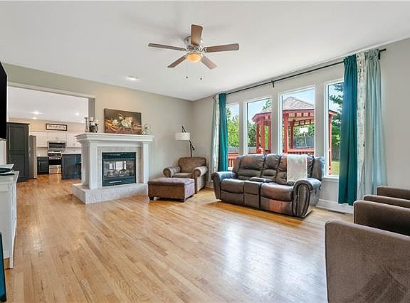 Beautiful 4 bedroom 4.5 bath home that sits on a quiet cul-de-sac in a fantastic Olathe neighborhood. More than 3,500 sq ft of space for your family to enjoy and grow. Newly remodeled kitchen with painted cabinetry, quartz countertops, new refrigerator, breakfast area and hearth room. Lovely dining room and large great room. See through fireplace in great room and hearth room. All with windows that allow for loads of natural light to flow into the house. Wood floors and new carpet throughout. Main floor master bedroom with en suite and large walk in closet. Second bedroom upstairs with en suite and 3rd and 4th bedrooms share Jack & Jill bathroom. Finished lower level with huge family room and bonus room that can be a non-conforming 5th bedroom and second bonus room that is perfect for a home office. Lower level has a full bath too! Fantastic outdoor space with deck, gazebo and fenced yard for the kids and pets to play. You'll love entertaining here! Award winning Olathe schools and close to shopping, restaurants, and entertainment venues. Community pool and playground for summer fun. There's so much to love about this home! Come see it today!