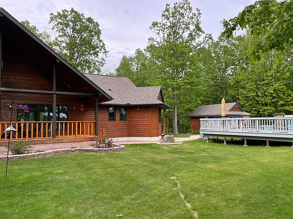 Paradise awaits you- Nestled in Sugar Maples, Oaks and other Broad-leaf Trees, This Home offers Majestic Serenity while offering you all Amenities of Comfort and Convenience. A Great Room equipped with lots of windows a wood burning Fire place that loads from the outside creates a very inviting Room, a Kitchen with massive storage, built in Double oven, Center Island, Corian countertops and a Beautiful deck to enjoy your morning coffee. Double Heated attached garage, Large entrance area - Main floor laundry with plenty of storage and a sink. Main bedroom has walk in closets-private bath and shower with a deck to the outside- 2 additional bedrooms with a full bath are also on the main floor. Upper Floor offers a Great Game Room-2 nice bedrooms and a 3/4 Bathroom. Lower level offer a Family room 3/4 Bath and a Bonus room. Additional Double heated Garage, A sauna, A 16x32 Heated Pool And a 142' golf Fairway. Over 1200 sq ft of dry Storage in the crawl spaces. App.50x100 Concrete Pad