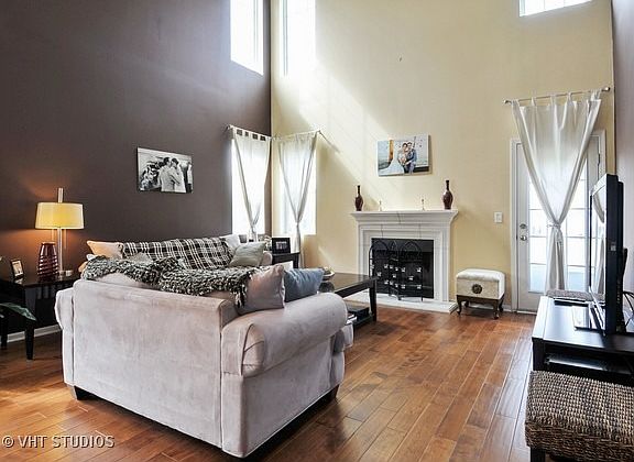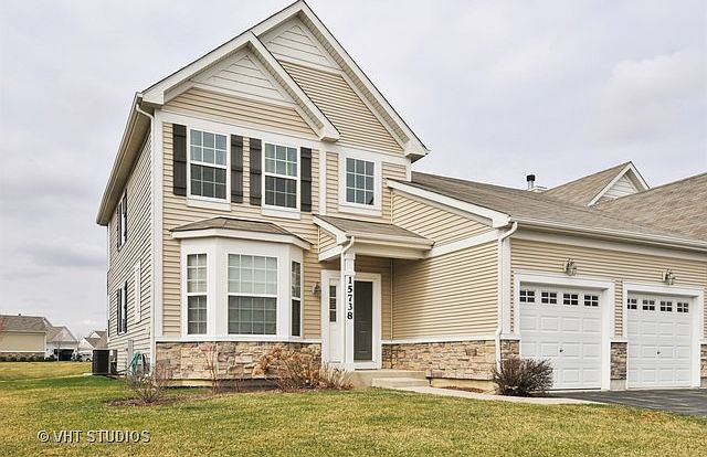Gorgeous end unit with first floor Master Bedroom and Luxury Master Bath! Spacious light and bright Living Room and Dining Room with true 3/4" hardwood flooring! Crisp white stone fireplace accents nicely with 2 story ceilings! Kitchen boasts 42" Maple wall cabinets with bay window at nook. Loft overlooks Family Room. Deep pour basement ready to be finished! Walk/Bike Paths to Downtown Plainfield and Springbank Aquatic Center. Snow removal included. Fences allowed.