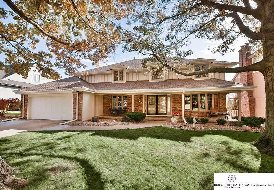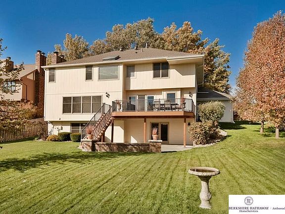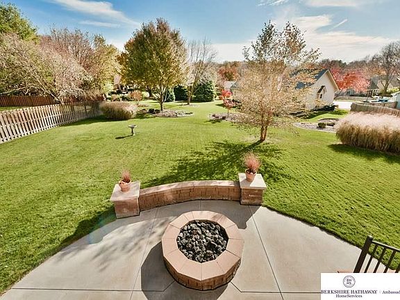 Immaculate Two-Story Walkout in Fountain Hills! Spacious, move-in ready home w/mature trees & new roof (2020). Covered front porch opens to two-story entry w/tile flr. Formal living/dining rms just off the entry. Lrg family rm adjacent to kitchen w/stone (wood burning) fireplace & windows overlook bkyd. Updated, open kitchen (2020) features plenty of cabinets, quartz, tile splash, island w/cooktop (2020), stainless appli (2020), office nook, dinette & tile flr. Composite deck w/powder coated alum railing (21x14) overlooks landscaped bkyd, lrg concrete patio & gas fire pit w/sitting area. Primary suite has brick (gas) fireplace, WI closet & bath w/skylight, dual vanity w/granite, whirlpool tub, tile shwr & tile flr. 2nd flr has 3 addt'l good sized bdrms. Updated 2nd flr baths. 1,432 sqft unfin bsmt-lots of potential. Furnace (2016), water softener (2014) & water purification system (2013). Sprinkler & security systems. Close to elem school & minutes to West Dodge Road & nearby parks!