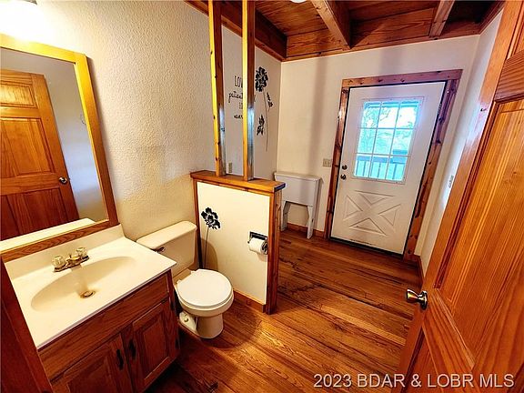 Welcome to this adorable home nestled on 2.58 acres. This rustic retreat is a charmer, offering a serene & tranquil living experience. Surrounded by nature's beauty, this home presents an incredible opportunity to embrace a peaceful lifestyle while enjoying the comforts of modern living. As you approach the property, you'll be captivated by the cabin's authentic wood construction, which seamlessly blends into the natural landscape. The exterior features a charming porch that invites you to relax & sit a while. It also has a storage shed & chicken coop already set up. Step inside & you'll be greeted by a warm interior, exuding a cozy ambiance throughout. Main level hosts an open concept encompassing the kitchen, dining & living room as well as a half bath with laundry & the master bedroom & bath. Upper level has open game/TV area, three bedrooms & full bath. Walkout lower level hosts an office/hobby area, full bath, storage & 2 car garage area. Beautiful wood floors throughout.