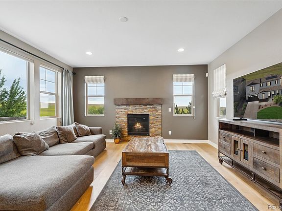 Welcome to this stunning two-story home with an abundance of upgrades, nestled against a backdrop of serene open space. Upon entering, you'll be greeted by a bright living room that seamlessly flows into the kitchen, complete with a charming fireplace. The kitchen itself is a true delight, with granite countertops, a custom chef's kitchen equipped with high-end appliances, a striking brick backsplash, newly painted cabinets, and a walk-in pantry. The addition of a breakfast island with seating makes this kitchen an absolute dream for both cooking and entertaining. Furthermore, the main floor offers a private office with elegant French doors, which can easily double as a guest bedroom thanks to its adjacent full bathroom. To the upper level, prepare to be captivated by the breathtaking views from the master suite. The 5-piece master bath with dual vanities and a generously sized walk-in closet further enhance the allure of the suite. In addition to the master, four versatile rooms await, providing ample space for bedrooms, home offices, or whatever suits your needs. Another full bath and convenient laundry facilities complete this level. However, the allure of this property doesn't end at its interior. Step outside onto the oversized deck and stamped concrete patio, creating the perfect space for entertaining guests and enjoying the outdoors. The backyard truly becomes an entertainer's paradise. Located in the sought-after Candelas neighborhood, this home offers more than just beautiful living spaces. Residents here have access to an abundance of amenities, including trails, basketball courts, a baseball field, tennis courts, parks, and not one but two clubhouses, each with its own pool. Don't miss out on the chance to turn this lovely property into your forever home. Embrace the opportunity to make it yours and start enjoying a life filled with comfort, style, and convenience. With its fantastic features and prime location, this home is a must-see and a must have!