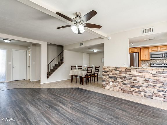 Rare opportunity to own an updated move-in ready 3BR/3BA townhouse in excellent location. This light & bright home has been tastefully updated and offers an open floorplan. Recent upgrades include freshly painted interior, new vinyl flooring throughout as well as updated bathrooms. Beautiful kitchen with granite countertops, accent stone, and soft close drawers. This townhouse has been well taken care of by the current owners: AC and Water Heater replaced in 2020 and roof resurfaced in 2022. Its East facing patio is fully fenced for privacy and provides shade for summer afternoons. Community amenities include pool, basketball court, play area, and ample visitor parking. In close vicinity to the UofA, Medical Centers, Shopping & Restaurants. Come and see it today!