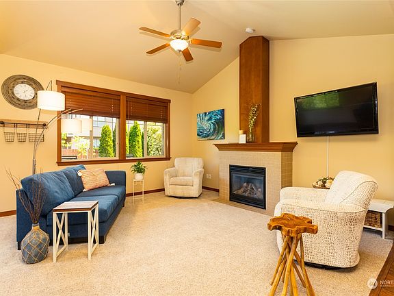 Come home to one of Lynden's best & desirable 55+ neighborhoods. Friendly and fun! Perfect for those who love the benefits of community. yet want the privacy of a small yard for gardening. Situated on a corner means a little extra space between neighbors. Charming backyard with a low maintenance & romantically-lit waterfall. Calming and serene for your morning coffee... in the evening enjoy the glow of the sparkling water by moonlight. So pretty. Open floor plan for entertaining. Hunter Douglas custom wood shutter blinds. New flooring and carpeting on main level. Extra garage fridge. Storage shed. Large storage space under the stairs. Spacious clubhouse for personal parties, events, tv and pool table.