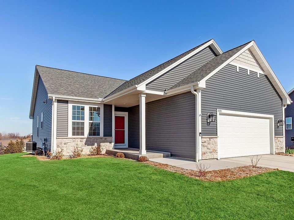 Exquisite, open concept executive ranch home, built in 2021. This bright and open home features 2 bedrooms, 2 full bathrooms, a den and a large Great Room on a cul-de-sac! Gorgeous kitchen with stainless steel appliances, quartz countertops, subway tile backsplash and more! Nice Master Suite with large walk in closet and bath with main floor laundry. Sliding doors go to the huge deck, perfect for entertaining. Fully exposed lower level walkout plumbed for 3rd bathroom. The walkout basement leads to a beautiful patio. Extra amenities include premium flooring, radon system, extra outlets, reverse osmosis, fiber optics for internet, and storm door. Move in ready!