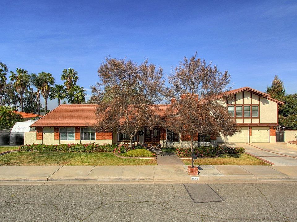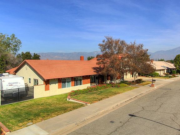 Located in Smiley Heights, with spectacular views, this home has everything you are looking for. Marvelous entry with formal dining room to your left and massive library with floor to ceiling bookshelves to your right. The living room creates an open feel with its high slanted ceiling and access to the beautiful kitchen. The kitchen enjoys built-in cabinetry and tile floors. Gorgeous Main Floor Master Suite including beautiful bathroom with marble floors and shower, easy access to pool and patio through the sliding glass door. Upstairs holds a large loft area perfect for game room or entertainment center, bedroom and bath. Step out back and immediately notice the panoramic views of the mountains, valley and city lights of the Inland Empire. Gorgeous pool and spa, putting green, built-in barbeque and large RV Parking area.