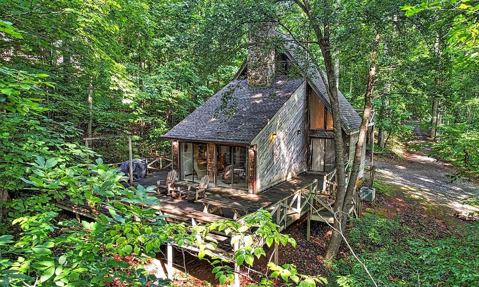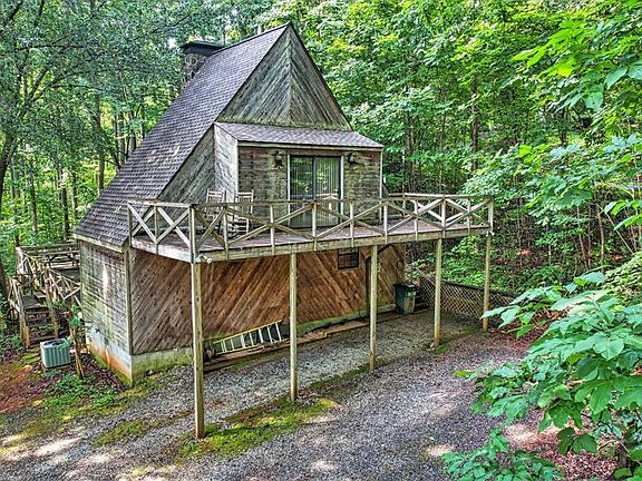 ALL OFFERS MUST BE SUBMITTED BY NOON MONDAY 8/16. A Vacation Rental, or A Beautiful 2BR/2BA home of your own, either way you win with this home being sold fully furnished/turn-key. Set in a private wooded setting, you are less than 5 miles to town, Lake Chatuge and all that the area has to offer. There's a wood-burning fireplace in the living room to snuggle by and the eat in kitchen has tons of cabinets and a full appliance package. You'll find a bedroom and bathroom on both levels and the upper level master suite has access to a large open deck. There is also an oversized open deck on the main level.