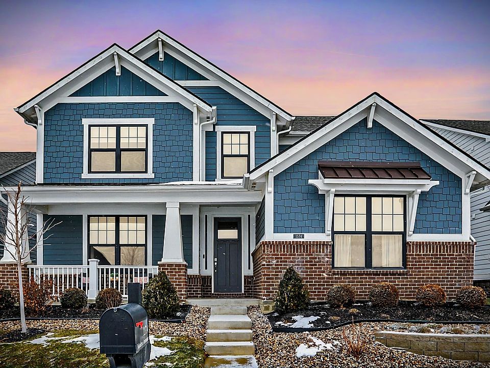 Welcome to the heart of West Carmel! This impressive, better than new home combines modern style with an inviting vibe. With ~3000 square feet of space, there's plenty of room for everything you need. As you walk in, you'll love the open layout that makes it easy to live and entertain. The idyllic kitchen, with dual ovens, expansive center island, walk-in pantry, and loads of white quartz counter space, is a dream. The great room is open, bright and airy, thanks to plentiful windows that let in tons of natural light. Cozy up by the floor to ceiling tiled fireplace, and enjoy the on trend light fixtures, upgraded engineered hardwood floors, and beautiful shutters. The primary suite is your personal getaway with vaulted ceiling, large walk-in closet and an enhanced shower with dual shower heads. Upstairs, you'll find two additional bedrooms and a loft space that's perfect for hanging. Outdoors you have the cutest covered front porch and a covered back patio. The Clay Corner neighborhood offers a perfect blend of modern living and comfort with proximity to the Village of West Clay Restaurants and amenities that are walkable.