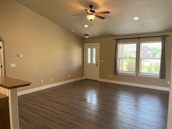 Single family home in a quiet neighborhood with lovely neighbors. The home has a large, fully fenced yard and irrigated garden, with all new appliances throughout. Mowing/Lawn service is included. Located on a cul-de-sac, it's a great location for kids to play and ride bikes. The house has 3 bedrooms and 2 full bathrooms. The master suite is located on the opposite side of the house from the two kids rooms and has a generous walk-in closet. The master bathroom includes a walk-in shower and large tub (great for soaking). Upstairs above the garage is a large loft area with built in home theater, including a surround sound system. The home is in district for the new Crimson Point elementary school and walking distance from both Reed, Hubbard and Ross Elementary schools, as well as Kuna and Fremont Middle Schools and Kuna and Initial Point High Schools. The house backs up to the School Road bike route and is a safe 10 minute ride to the Kuna greenbelt, Bernie Fisher Park and the Kuna splash pad. We started our family in this home and we hope that you enjoy it as much as we did! Lawn service included Owner pays HOA dues Utilities not included No Smoking/Pets