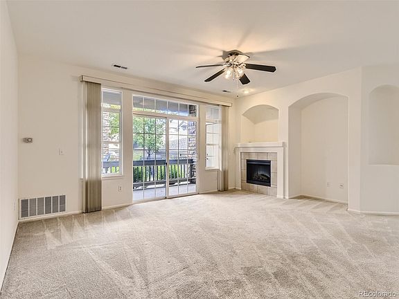Move in ready 2 bedroom, 2 full bath condo in Plum Creek area. Desirable 1st floor and private location. Pride of ownership in this condo, across from the Douglas County Fairgrounds and close to I-25. It features a spacious kitchen with all all appliances--refrigerator, dishwasher, range and new microwave. Washer and dryer also included. Nice sized bedrooms and each has its own full bath. This unit is light and bright! There is also a newer furnace and storage area. The deck is private and a great outdoor space!