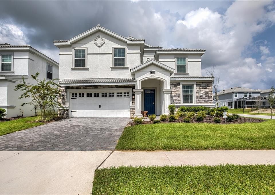 JUST REDUCED!! This Professionally Furnished beautiful 8 bedroom 5 bath home is located in the gated golf community in Champions Gate. Features tile roof, ceramic tile flooring, stainless steel appliances, a private POOL and SPA, game room. ALL FURNITURE and DECOR included in the listing price. The community features amazing amenities such GOLF COURSE, restaurant, bar, LAZY RIVER, RESORT STYLE POOL, fitness center, and playground. This home is zoned for short term rental. Great Opportunity for vacation home investors.