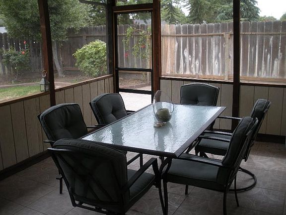 GREAT LOCATION on oversized corner lot in Clovis neighborhood! Well-maintained home welcomes you with soothing water fountain in front courtyard. Upon entering, you will find warm decorator paint color, laminate wood flooring, and bright outdoors illuminating from beautiful new triple pane windows- all surrounding the great room with vaulted ceiling/exposed beams and newer gas fireplace insert; this room opens up to the spacious dining area and is great for entertaining friends & family. Double French doors lead you to screened/enclosed 34 x 22 back patio/sun room with spacious wrap around backyard & 15 x 10 Tuff Shed for all your storage needs. There is a newly remodeled front bath with jetted tub & marble vanity. New upgraded insulation & H/A Duct System along with whole house fan make this home more energy efficient. Come and see this amazing home with easy access to all , too many extras to mention!!