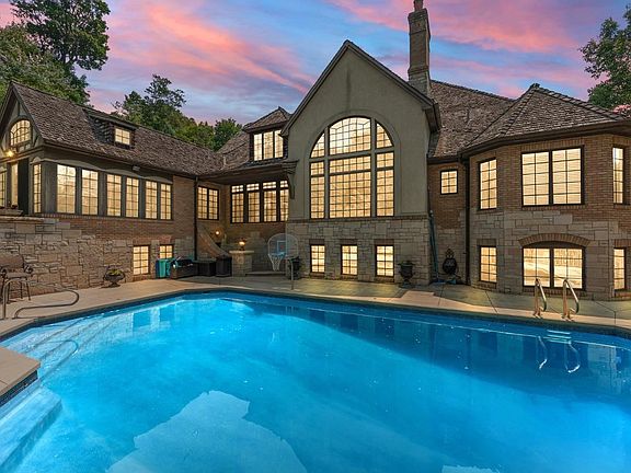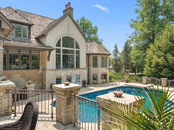 A home that far exceeds expectations in a one-of-a-kind community! Over 1 acre in the gated private subdivision, Sand Creek. Phenomenal architectural features throughout. A private backyard pool oasis featuring a 26 x 40 gunite pool w diving board & stone terrace & walk-ways plus a separate entrance into pool changing rooms & bathroom. 5 bedroom/7 bath, main flr master, office, living room, dingin room, gathering room, open concept kitchen, basement: rec room, billards room, movie room, work out room &vmore! Large master suite includes extra seating, pool views, large master bath & walk-in closet. Sunroom off kitchen w heated floors. 18' wood beamed ceiling in living room w fireplace. 2way fireplace in large basement. Detached heated garage with potential for lifts. Wooded, private lot with a circular drive, bridge over a 150' stream including water falls and koi pond. Golf cart friendly community. Within walking distance of the private Sand Creek Country Club!
