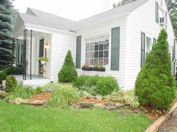 Quick possession: Over 1,350 sq. ft. living area. 3 bedroom, 1 ba. Eat-in kitchen, family room and living room. Updated kitchen and bath. Newer laminate flooring in kitchen and family room. Thermo-windows. Full, dry basement. Updated electrical and plumbing and newer roof. Newer furnace and central air.Easy care vinyl siding. Large deck with hot-tub. Beautifully landscaped .30-acre lot. 3-car detached garage in top condition. Wooded, fenced back yard.