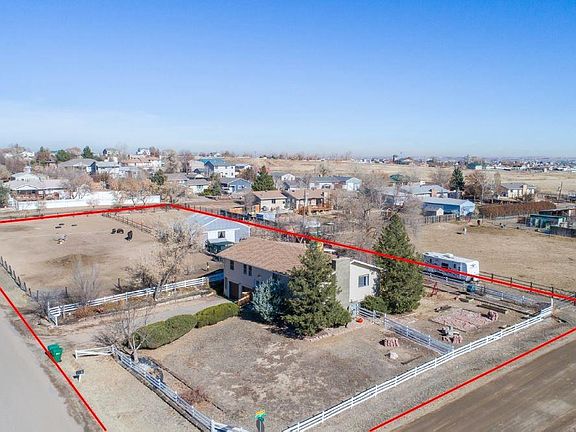 One of the few 1 acre workable horse properties in Hi Land Acres. Just 7 miles from I-25 via hwy 7. Total 4 bedrooms and 3 baths. Large formal living & dining room adjoin a country kitchen with eating space on main level. 3 bedrooms & 2 baths also on this level. The lower level family room w/wood burning fireplace is a great space for the kids--or can be used with the adjoining bedroom & ¾ bath as a guest retreat. There is an enclosed year round trex deck w/double pane windows (choose your interior finish as that is yet to be complete). New Roof in 2020. Multiple raised garden beds present to try your green thumb. Barn with additional new shade structure added (east side). Multiple gate configurations, run ins, and obstacle riding area set up. Hay storage and tack/feed room with top storage, shelving and electricity within and front/back of barn. Chicken coop is custom built with green roof, and easy clean floor drawers that pull out. Pull around drive in back, for easy drive through of horse trailer or RV for loading. Lots of additional parking and space present with gates at each end of barn drive. 3 stall horse barn and storage shed help round out your livestock needs.