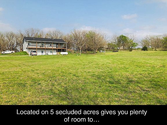 With easy access to Hwy 24 and Hwy 99 is this 2021 custom built home thats tucked away off to itself behind a large line of trees that run along both sides of the private driveway and along the eastern and southern and western edge of the property. It features 5 bedrooms, 3 full baths, custom built-in shelving throughout the home, 3 car garage, a full finished basement with tons of storage space, safe-room and a large deck. LVT flooring throughout the home and plush carpeting in all bedrooms. Main Level features: - Open floor plan with 9ft ceilings - Front entry custom coat rack with bench and shoe storage - stainless steel kitchen appliances - large eat-at island with cabinetry on one side - an abundance of white shaker cabinets - plenty of space for a separate dining-room table if you desire - Walk-in pantry with custom built-in shelves - Walk-in laundry room with custom built-in shelves ** 2019 front-load washer and dryer on pedestals can be negotiated to stay with the home - gas fireplace surrounded by stone with a rough-cut cedar mantle - Large master bedroom at separate end of home with private exterior door that leads to covered deck - Master walk-in closet with sliding barn door has custom built-in shelves - Master bath has large walk-in shower with bench, His-and-Her vanities separated with custom built open faced cubbies - Bedroom 2 and bedroom 3 with custom built-in shelves in closets - Bath 2- Full sized with custom built cubbies - 3-car fully insulated garage, 220 wired outlet, plumbed with hot and cold water Finished Walk-out Basement Features: - Family room with door leading out to concrete patio and 2 additional parking areas - Bedroom 4 with walk-in closet and custom built-in shelves - Bedroom 5 with walk-in closet and custom built-in shelves - Bath 3- Full sized with custom built-in cubbies - Man-Cave room that features a wall cabinet with countertop, sink and open spaces at each end for a full size refrigerator and either a dishwasher or wine-fridge - Utility room with HVAC, water heater, pressure tank and water softener - Huge safe Room - Tons or storage space underneath the stairs Utilities: - Water: Well (option to hook-up to Rural Water Dist) - Electric: Evergy - Sewer: Septic - Cable: WTC - High speed WIFI: WTC Warranty: - Sellers will purchase and provide a 1 year home warranty for buyer Showings: * Only private showings * 24 hours notice * Buyer Agents welcome