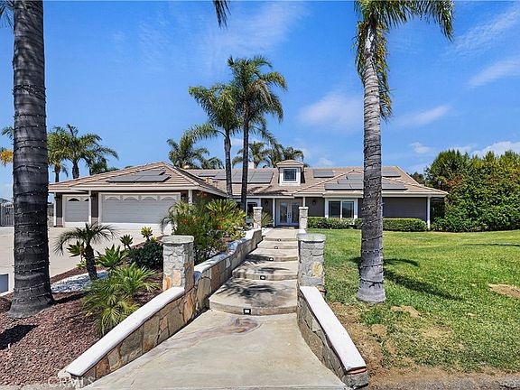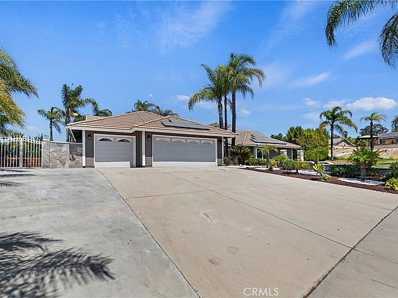 Nestled in the serene neighborhood of Woodcrest, this stunning property offers vaulted ceilings and an expansive oasis of luxury and comfort. Spread across a generous lot, the beautiful fruit garden and over 30+ palm trees creating a picturesque setting and leaving you feeling like you're always on vacation.