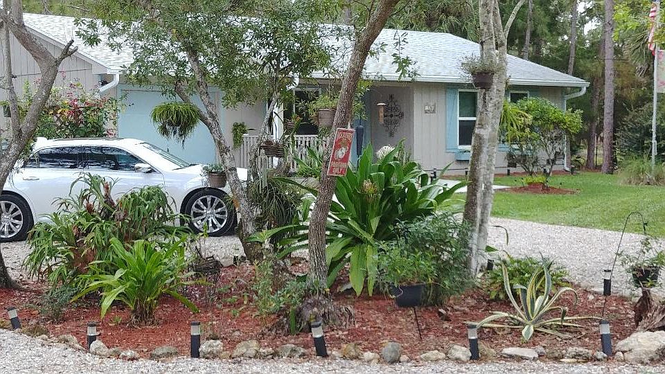 Well maintained, original owner, 3 BR, 2BA on 1.31 acres. New roof 2016. Property is fenced with a gate. Large pond with dock and fountain in private back yard. Tall privacy hedge around frontage. Screened and roofed back porch with cable connection. One car attached garage with pad on side of house. Newer GE Appliances in kitchen. Bathrooms remodeled in 2018. Hurricane windows installed 2018. Closets by Design. New flooring throughout with bedrooms carpeted.