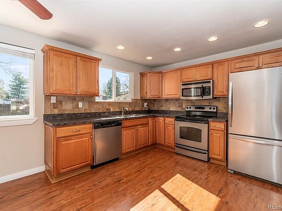 This Aurora cul-de-sac home offers a fireplace, stainless steel appliances, and a two-car garage.