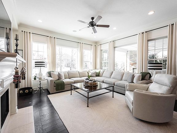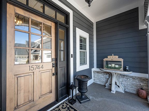 Meticulously maintained and updated home with striking elevation in popular Bridgewater Parks neighborhood. Light, bright interior with neutral decor throughout. Gorgeous hardwood floors on main floor. Private backyard with an incredible covered porch, outdoor stone fireplace, and new 18K added deck....you will absolutely love it! Updated kitchen features quartz countertops, tile backsplash, stainless steel appliances. Kitchen opens to a family room with built-ins and gas fireplace. Natural light abodes all around. Large dining space. Laundry room with plenty of cabinets as well as sink, hanging space and folding counter. Primary suite features tray ceiling and master bath with double sinks, quartz top, large walk-in shower, and a closet fit for a princess. Basement rec room, playroom/craft room, incredible bar area. Surround sound throughout the home. Smart home features. You need to HURRY, because this home will not last!