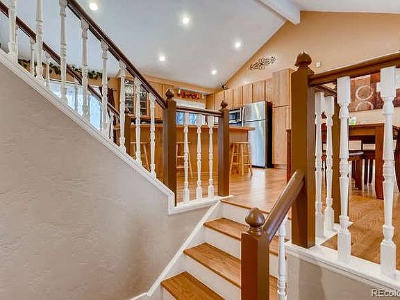 Beautiful and updated home with a great open floor plan, fresh paint and flooded with natural light. Gleaming hardwood floors on the main level and hallway. You will love the large, updated kitchen with tall pull - out cabinets, island and SS appliances. It is open to a huge dining area and ideal for gatherings with family or friends. In the family room you can cozy up next to the fireplace. Rest and relax in the nice Master bedroom with a luxurious en-suite bathroom with jetted tub and large shower and beautiful tile. Two secondary bedrooms are also upstairs. The home has AC and an attic fan. Outside you can enjoy the beautiful Colorado weather on a large Trex deck. The yard has a sprinkler system and you can park a small RV on the side of the house. A shed houses all your tools. Exterior paint and roof are newer and the house is protected and has a NEST system. Located close to shopping, dining and easy access to I-225.