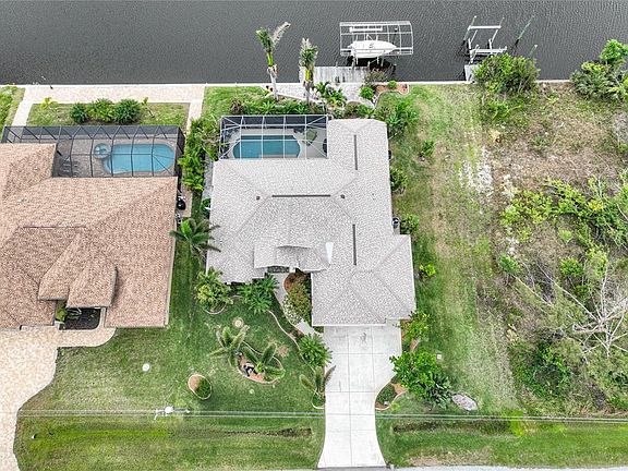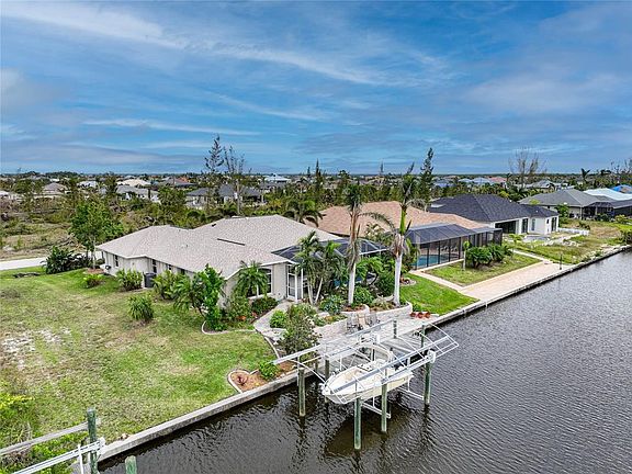 Imagine coming home to this exquisite 3 Bedroom, 2 Bath, 3 Car Garage that overlooks the pool and the beautiful Aqua Waterway. This property is located in the much sought after community of South Gulf Cove, due to its location and easy access to the Bay, River, Intracoastal Waterways and the Gulf. As you pull up to the property you will notice the lush green landscaping and cascading palm trees that adorn the outside of the home. Enter through the double designer glass doorway as you are engulfed in the bright airy expanse of the home. You will notice the gorgeous views of the heated sparkling pool (26x13) and waterway from almost every room. Tray Ceilings, Archways and Nooks bring out the beauty of this home. Triple slider pocket doors allow additional open space for entertaining family, friends or just enjoying the Gulf breeze. Tray Ceilings throughout the home, The dining room has beautiful wood floors, along with fantastic views overlooking the water and the lush gardens. The kitchen has solid surface counter tops, 2 pantries, stainless steel appliances and a coffee bar. A large family room offers stunning views of the pool and waterway, triple slider pocket doors. The large owners suite has tray ceilings, double sliding doors to the lanai/pool, wood floors, and walk in closets. Master bathroom has dual sinks, garden tub and separate stone shower. The second and third bedroom offers large closets, high ceilings and lots of light. Seller just installed a new electric awning with lights that bring out the evening ambiance. The landscaping in the rear of the home offers three tier, stone wall pavers that are filled with beautiful flowers and blooming bushes. The first stone deck is 40x11 allowing for plenty of room for loungers and additional entertainment space. The wood deck is 8x30 that extends out from the concrete seawall and has water and electric. There is a 10k lb boat lift and a brand new tan awning cover that goes over the boat lift (will be installed). Roof (2022), A/C is 17 Seer Train (2019), New Irrigation Pump, New Pool Pump, Washer and Dryer (2016), Recessed Screen on Front Door, and Hurricane Shutters. Enjoy world class fishing, golfing, boating and some of the most beautiful beaches in Florida. Nearby shopping, dining, and medical facilities. This home wont last long so schedule your showing today!