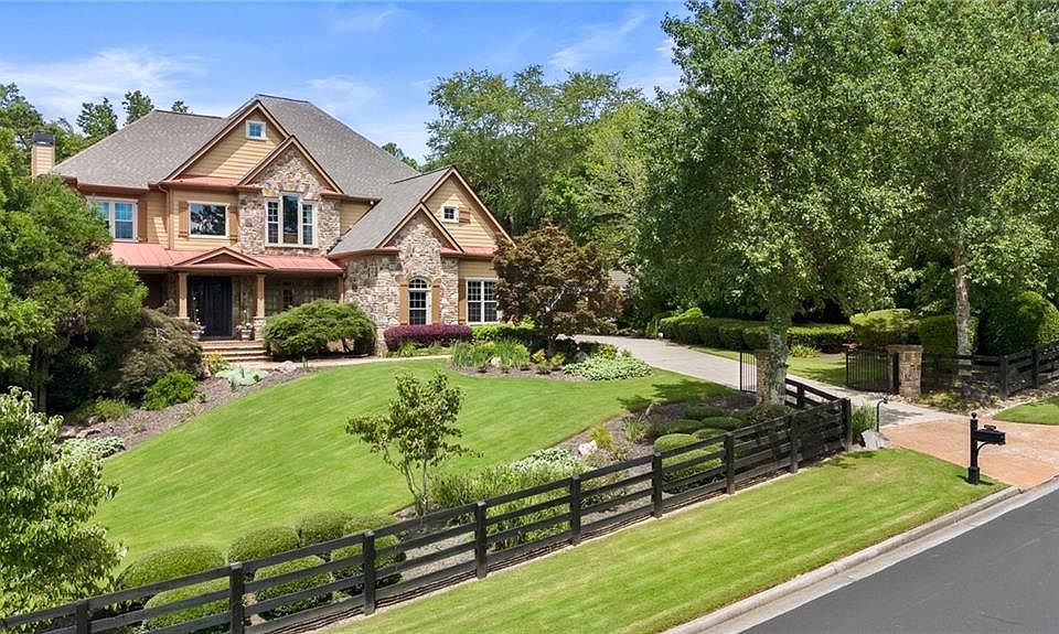 Don't miss this immaculate home in Canterbury on the Lake, it is truly spectacular. Located in the heart of Milton, this lake community of executive estates with gated driveways and lushly landscaped yards invites you home to luxury. At 15745 Canterbury Chase, you will find a beautifully updated interior with walls of windows overlooking a perfectly groomed backyard that truly has it all - pool, hot tub, a natural water features, annual and perennial gardens, a fully furnished pool house, and a grassy lawn that extends to the back of the one-acre lot. Don't miss the side flagstone shade patio perfect for grilling and sipping a coffee or a cocktail. The property's structures and systems are well-maintained, paint is fresh, and the bedroom carpet is NEW (2024). Floor to ceiling windows span the entire length of the back of the home, be them in the living room or the sunroom, to enjoy the stunning private backyard view. The sunroom has LVT flooring, a separate Bose sound system and remote-control blinds for convenient operation and unobstructed views. The sunroom opens to the family room with built-in's and a stacked-stone gas fireplace and the updated kitchen, with quartzite counters, white cabinets and stainless steel appliances. The foyer is planked by a designated office with french doors and covered front-porch access, and a dining room made for entertaining. Architectural detail is everywhere, from the iron front doors to the extensive millwork. This sizable home has four bedrooms up, each with en-suite bathrooms and an oversized master with a spacious sitting area, gas fireplace and backyard views. A fifth bedroom and bath are on the terrace level, with a TV room, full bar, exercise room and workshop, tile floors, and large picture windows overlooking the covered lower patio and pool. Pause by the saltwater Pebble Tec heated pool and hot tub. Enjoy the stone creek and waterfall feature. Have a seat in the pool house with wood-burning fireplace, bar, TV and sofa-seating area, half bath, Bose surround-sound system and retractable curtain screen to retain heat for those football game days. Windows are all NEW double-pane vinyl for maximum energy efficiencies (2021). The home has Ring doorbell and a garage alarm both with cameras for enhanced security. The three HVAC systems are NEW (2023), the roof is NEW (2022) and the Navien tankless water heater with InstaHot re-circulate was installed in 2020. This executive estate property is move-in ready! Enjoy luxury country living with nearby grocery, retail, dining and professional services, where schools are highly acclaimed and Alpharetta's downtown city center and the Crabapple Market District are easily accessible.