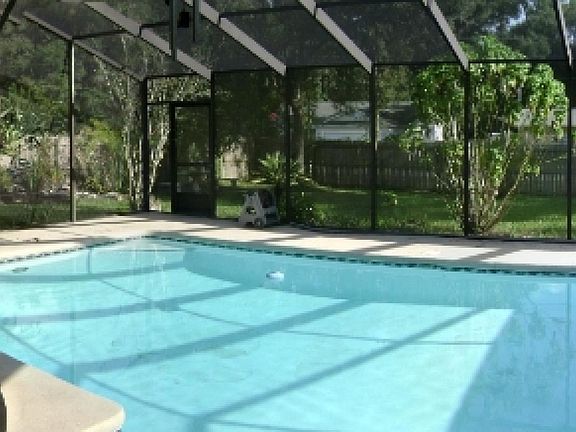 Welcome to this spacious split bedroom home on a corner lot with lots of potential. The living room is open to the dining area and is ready for entertaining. Light and bright, nicely equipped kitchen with bar height seating and stainless steel appliances. Sliders just off the kitchen lead out to the lanai overlooking an in ground, screen enclosed pool with ledge seating and views to the fenced in back yard. Master bedroom with en suite bath and large walk in closet. Three guest bedrooms, one of which also offers a walk in closet and connecting bath. Property also comes equipped with a pole barn and shed for extra storage space. For pre-recorded information on this home, please call 866-382-1654, Code #1265 for current price and additional details on the home.