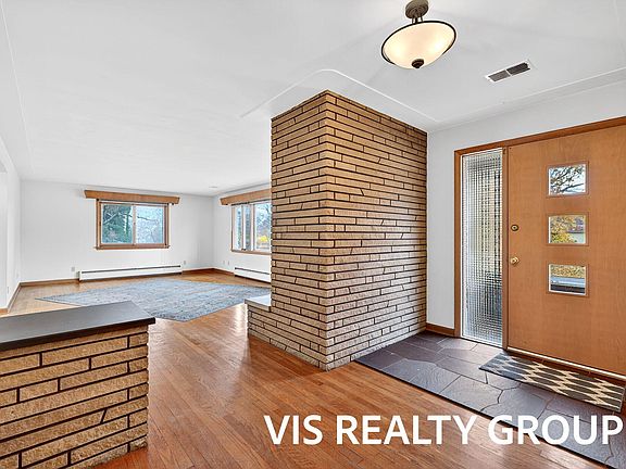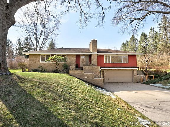 Beautiful mid-century modern home on ¾ of an acre in the Spring Lake School District, perfectly located just minutes from all schools! This charming 3-bedroom, 2-full-bath residence offers over 2,600 sq ft of move-in-ready living space. The main floor features original hardwood floors and an airy, open layout connecting the living room, kitchen, and dining area, with expansive windows that fill the space with natural light. A stately brick fireplace serves as a striking focal point, ideal for cozy Michigan days and nights.