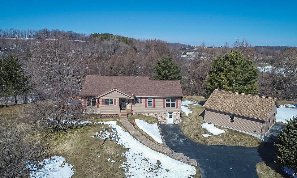Dreaming of country living in a recreational paradise? Then look no further! This one owner gem is new the market and features a 1462SF main floor with 3 bedrooms and 1.5 baths with a beautiful semi open kitchen/dining and sunken living room with vaulted ceilings overlooking 10 acres of woods, light meadow and a beautiful ridge! Full basement boasting additional approx 400+SF to include a game room, den area, dry storage, HUGE mudroom perfect when your coming in from 4 wheeling, snowmobiling etc plus inside heated workshop! 2 car garage, paved driveway, large side deck, hot tub, everything like new! New paint, corian counters, appliances, carpet, bathroom etc! Half bath can easily be converted to full bath! This is one not to miss!!