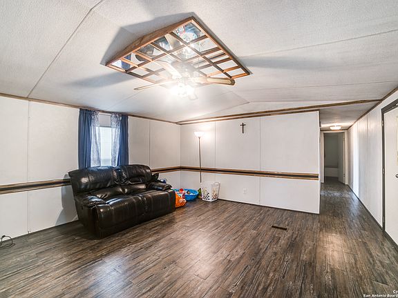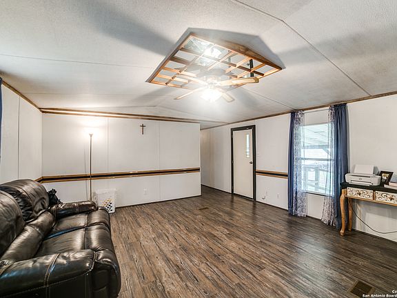 Charming 3 Bed 2 Bath Home on an impressively flat and cleared 3.03* acres which also features a desirable spacious shop with roll- up doors. Approx 22x42 FT. This well-kept manufactured home has new floors installed 12/14/2021, new refrigerator bought in 12/2021 that conveys, new fence around perimeter installed 02/22, and new central air unit installed 3/22. Property is in the favorable Southwest School Dist. Nearby HEB Groceries as well as convenient to all that San Antonio has to offer. Must see!