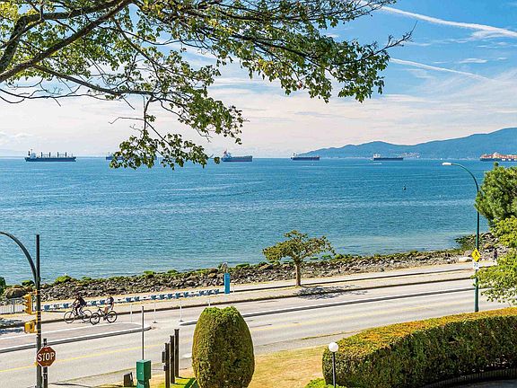 Welcome to Plaza Del Mar, an iconic beachfront building on English Bay. This recently upgraded 664 sqft home offers a rare opportunity to own a 1 bd suite on coveted Beach Avenue. The Northwest corner residence boasts views of English Bay & an open concept living, dining, & kitchen area w/ light hardwood floors. A large balcony embraces west-facing sunsets while the bright & oversized bdroom features a Juliette balcony. The open kitchen offers s/s appliances & hood vent over the island. The bathroom is updated w/ tiles, composite countertops & stylish vanity. This central West End location is hard to beat w/ a Walk Score = 90. Steps to Seawall, Sunset Beach, English Bay, Stanley Park & more. Includes 1 parking & 1 locker. A peaceful, sought-after beachfront lifestyle awaits.