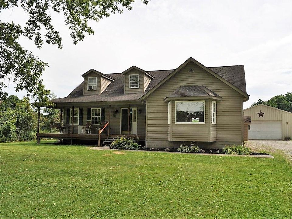 Fantastic cape cod situated on an acre with a detached garage! The 1st floor provides a desirable layout including the huge great room with a gas log fireplace & open concept to the sizable kitchen equipped with breakfast bar seating, eating space, & access to the back deck. Also on the 1st floor you'll find a separate den/office area accented by hardwood floors (great when working from home), convenient 1st floor laundry & 1/2 bath, & the owner suite complete with a walk-in closet & private full bath with soaking tub & separate shower. Upstairs are 2 more bedrooms, 2nd full bath, & loft/game space. The lower level offers a great rec area! Entertain with ease whether inside or out on the deck & enjoy the quiet setting all year round! 2+ Car detached garage. Welcome Home!
