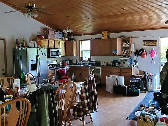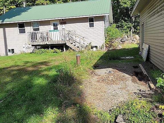 Nice work in progress. Great set back from road. Nice trails. Big garage. Underground power. Great well. RV hookups. Plenty of room to expand in house. Mainly permanent residents in area. Good hunting. Mixture of hardwoods and varied terrain. Great location. Bring offers.