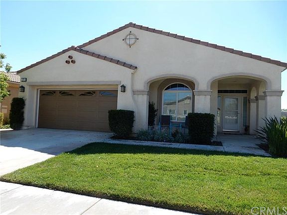 If you are looking to retire in Four Seasons 55+Resort Style community this is the perfect home*1986 Sq.Ft. light, spacious open floor plan with upgrades such as 20" tile throughout, upgraded carpet in bedrooms, beautiful Crown molding throughout the Entire home, Plantation Shutters, Fireplace, Ceiling Fans, beautiful outdoor area with COVERED PATIO, FIRE PIT, FANTASTIC VIEW, PRIVACY & MORE* Master bath with Luxurious soaking tub, his & her sink and two walk-in closets*Master bedroom with Plantation Shutters*Private guest bedroom and full bath located toward front of home away from the master bedroom* Den with French Doors could be used as an office etc.*The spacious great room features a cozy fireplace for winter ambiance*The elegant dining area is spacious and conveniently located just off the kitchen*Nice Pendant lights enhances this well designed kitchen with a good size pantry*The outdoors is a delight with a covered patio, great seating area, fire-pit, lush background of Potrero Creek and mountain views* The side yard is spacious perfect for your dream garden*The garage has epoxy flooring* THIS IMPECCABLE HOME IS IN MOVE-IN CONDITION*Enjoy the many amenities this community has to offer-the Lodge, tennis, movie theater, activities galore, & MORE!!!!