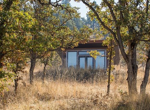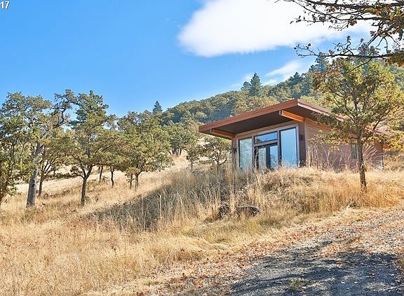 Modern cabin evokes glamping. Enjoy immersion in nature without sacrificing modern comforts. Fine amenities in a small space - custom concrete flooring, planked wood ceiling, copper countertop, walk in shower, huge windows, fir trim. Peek of Mt Adams and the Columbia River from areas of this delightful property.