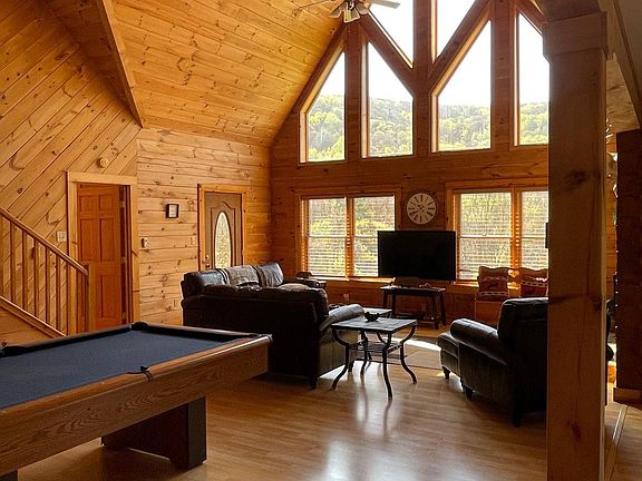 Seller found their next home! PRICE IMPROVEMENT of 39K! Nestled in the heart of Luray, VA, this charming log home offers a serene retreat with captivating views of Shenandoah National Park. This home is currently used as a SUCCESSFUL VRBO VACATION RENTAL. Boasting 2 bedrooms plus a loft and 2.5 baths, this cozy abode is adorned with exquisite wood and stone finishes throughout. Unfinished Walk-Out Basement is 1,760 sq ft of unlocked potential. Rough In Plumbing available to add another Full Bath with additional Bedroom and Rec Room Area. Step into the spacious family room featuring vaulted ceilings with panoramic views of the surrounding Blue Ridge Mountains. The generous kitchen and dining area provide ample space for culinary adventures and gathering with loved ones. Home comes fully furnished with exception of the dining room table. Situated on 3.276 acres, the property presents a semi-cleared lot complete with a firepit and BBQ area, ideal for hosting outdoor gatherings. Plenty of parking ensures convenience for you and your guests. 10x20 Storage shed located at the top of the property is perfect for storing lawn care items and the leveled area can be used to park additional vehicles. Located at the quiet end of the road, this tranquil retreat offers encounters with abundant wildlife, from deer and turkeys to bobcats and bears. For outdoor enthusiasts, adventure awaits just 8 miles away at the Thornton Gap Entrance to Shenandoah National Park, offering access to Skyline Drive and a myriad of recreational activities including camping and hiking the Appalachian Trail. In addition to Shenandoah National Park, Luray Caverns, Downtown Luray, Shenandoah River Tubing, Kayaking and Canoeing, Jordan Hollow Stables, & Ziplining are just some the amenities around the Amazing Grace Log Cabin. Please don’t access the property without an appointment, tenants are in the home.