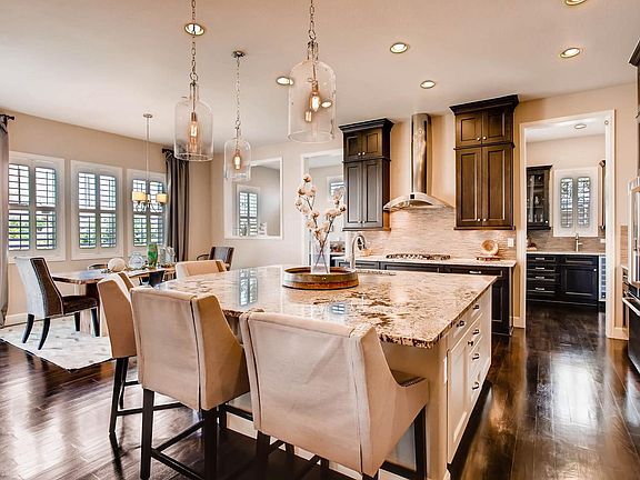 Gorgeous, almost new, 2- story home with full finished basement in the highly desirable community of Timber Ridge. With over 6000 finished square feet, this home shows like a model with beautiful finishes. Stunning Gourmet Kitchen with slab granite counters, stainless steel appliances, tech area and huge pantry. Formal living room and dinning room with butlers pantry and wine fridge. Brand New walnut flooring and custom plantation shutters throughout! Expansive master bedroom with gas fireplace, large master retreat with wet bar and entertainment center. Spa like master bathroom and huge master closet! Private guest room with bathroom. Basement is perfect for entertaining and features additional bedroom/bathroom, bar area, large exercise room. Home theater area with seating, projector, screen and audio surround equipment included! Huge 1/3 acre lot which has been professionally landscaped and backs to greenbelt. This home is a MUST SEE! Call today and schedule your private showing!!!