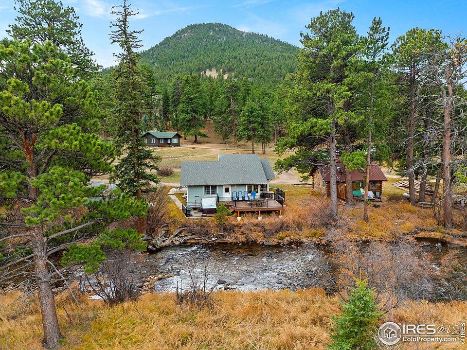 In a picturesque setting resides this vintage Estes Park 2 bed cabin....down a tranquil dirt road, steps from the river, and set amongst towering pines. It's an enchanting half acre property with 160' of river frontage where privacy abounds and relaxation is encouraged in the hot tub or on the expansive deck, both overlooking the Big Thompson river. And the auxiliary log cabin (502 SF and 1 bath) has charm to boot! Located in a charming and convenient west side location near the RMNP entrance, numerous restaurants, and local boutique grocer. Currently used as an active transferrable STR. Pre-inspected for your peace of mind.