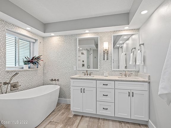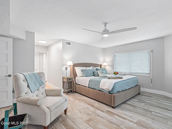 This corner unit was renovated and designed to be the owner's permanent home, so fit, finishes and fixtures were selected with that in mind. High quality and beautiful execution with attention to detail of utmost priority. The square footage is over 2,000 for a 3 bedroom, 2 bathroom condominium. There are views of the ocean along the north side of the condo as well as the east side making this even more desirable allowing for not just the beautiful views but lots of natural light. This is luxury living without all the hassles of owning a single family home. Enjoy the heated pool or you are just steps away from the communities private beach access. Watch the sea turtles, cruise ships, dolphins or the rocket launches from your wrap around balcony. This unit comes with a one car garage as well as one additional assigned parking spot.