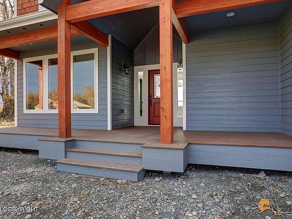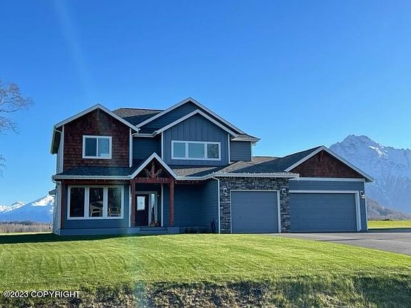 GORGEOUS! This home sets on the bluff side to take in unobstructed views. Two master bedroom ensuites; main level plus upper level w/sauna & xlarge separate shower. In floor heat, additional blown in insulation, and a multitude of windows... the owners worked with the builder to create a true custom home. 4 bed + den, Quartz countertops, LVP flooring throughout, this home is gorgeous!Rare opportunity to find such a stunning home in todays market! Located in lovely Rocky Point Subdivision, this home offers 4 bedrooms PLUS a den. Downstairs offers a "mini" master complete with private full bathroom (with tiled shower) and door to back deck. Upstairs offers 3 bedrooms, two "additional" bedrooms which are set apart from the upstairs master suite. Upstairs master suite offers a glorious bathroom suite, complete with sauna and x large tiled deluxe shower. Lots of windows to take in the views and natural lighting. Lets talk about the views -- WOW WOW WOW. unobstructed with views of the mountains and river. The open concept kitchen offers updated colors, giving off a sense of peacefulness. In floor heat, luxury vinyl plank flooring, extra blown in insulation (since lets face it, Palmer can get windy) This home was built by award winning Alaska Custom Homebuilders LLC and tailored to the owners wishes.