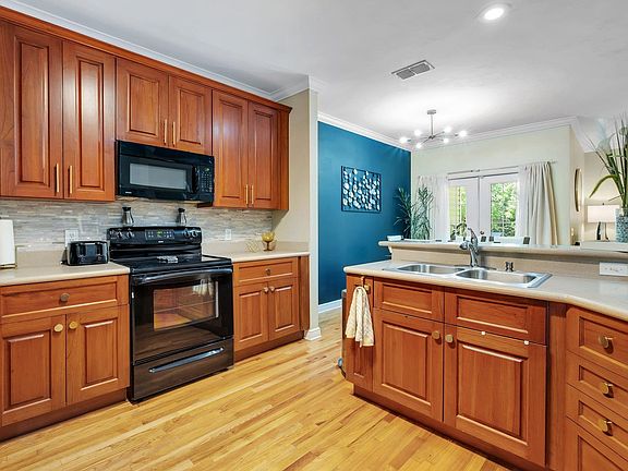 This beautiful unit is the previous builder model ~ Exquisitely maintained unit has tons of tasteful updates and finishes. Real sand & finish hardwood floors throughout the downstairs living area. The large, open kitchen is wonderful for cooking and entertaining w/upgraded larger cabinets that provides tons of storage, updated cabinet fixtures, solid surface Corian countertops, and spacious bar seating. Extensive crown moulding throughout the first floor, updated light fixtures throughout, tasteful & modern paint colors, covered back porch, and a half bathroom downstairs for guests. This well maintained community is within minutes of downtown, State Capitol, Universities, shopping, dining & so much more. Condo fees cover hazard insurance, exterior maintenance, termite bond, roofs, common area, community pool, landscape maintenance & trash.