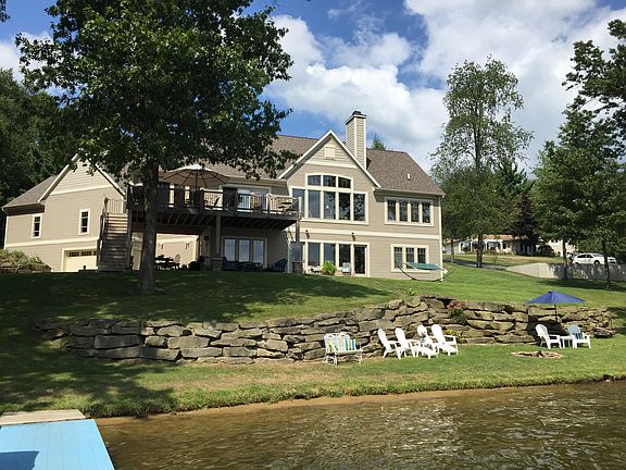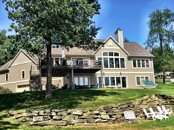 This walkout ranch is located on the North side of all sports Algonquin Lake. 240 acres of pure summer fun right outside your door. The other seasons are pretty remarkable as well. The two words that best describe this home are custom and quality. Updated and upgraded in every way. The gourmet kitchen has an 8 foot two tiered center island with granite countertops, ceramic tile backsplash, all new stainless steel appliances, and a walk-in pantry. Open main floor living space with expandable dining area with oversized sliding glass door to composite deck and lake, living room boasts soaring cathedral ceilings, floor to ceiling windows, and a gorgeous stone fireplace with wood burner that really cranks out some heat, built in shelving on both sides as well. The four season room also has cathedral ceilings and has full walls of windows out to the lake. GORGEOUS!!! Lakeside master bedroom suite with enormous walk-in closet, tiled shower, soaker tub, and two sinks with solid surf